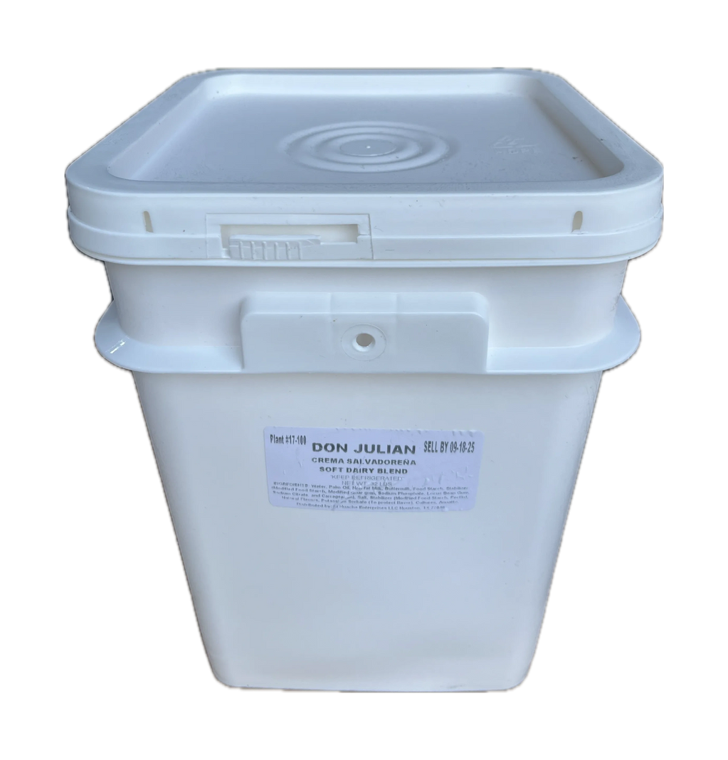 Crema Salvadoreña is a traditional Salvadorean-style sour cream that comes in a convenient bucket, making it perfect for restaurants and deli shops that need a high-quality, large-volume option.